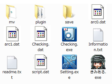 ダウンロードして解凍したら、下図の「きみある.exe」をクリックすると ゲームが起動します。