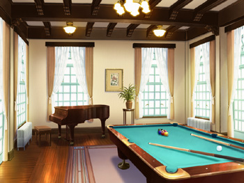 1階の広場。遊戯施設があり、ビリヤードや麻雀が楽しめる。