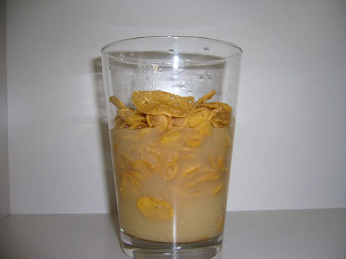 不可解な味と匂い、ふやけたコーンフレーク。